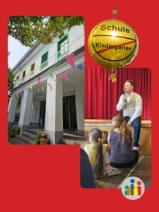 Unser Schulleiter Herr Hoffmann knüpfte in seiner Rede an Märchen an und sprach darüber, dass Fehler im Leben nicht Schlimmes sind – sondern vielmehr „Helfer“, die uns beim Lernen und Wachsen begleiten. Eine ermutigende Botschaft für den Start in diesen neuen Lebensabschnitt. Die Feier begann mit unserem traditionellen Monti-Lied, das von allen Kindern zur Begrüßung gesungen wurde. Anschließend zeigten die Gruppen, in die unsere Erstklässler*innen aufgenommen wurden, tolle Beiträge auf der Bühne: