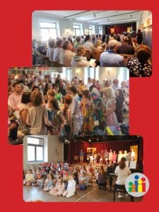 Unser Schulleiter Herr Hoffmann knüpfte in seiner Rede an Märchen an und sprach darüber, dass Fehler im Leben nicht Schlimmes sind – sondern vielmehr „Helfer“, die uns beim Lernen und Wachsen begleiten. Eine ermutigende Botschaft für den Start in diesen neuen Lebensabschnitt. Die Feier begann mit unserem traditionellen Monti-Lied, das von allen Kindern zur Begrüßung gesungen wurde. Anschließend zeigten die Gruppen, in die unsere Erstklässler*innen aufgenommen wurden, tolle Beiträge auf der Bühne: