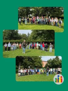 Alle Monti-Kinder kommen zusammen und stellen sich zu ihren Gruppen. Die auserwählten Paten überreichen den Kindern unserer Vorschulgruppe (Montinis) ihre Patenbriefe und heißen herzlich willkommen in der Grundschulgruppe, auch wenn die Einschulung dies erst offiziell macht.