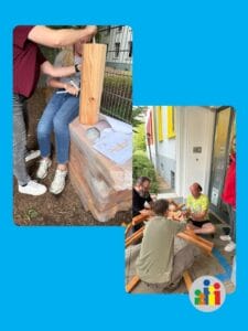 Klingt einfach? War’s nicht ganz, denn die Tische hatten keinerlei Bohrlöcher. Alles musste selbst ausgemessen, gebohrt und verschraubt werden. Und als ob das nicht genug wäre, stimmten die Maße vom Holz nicht überein – also hieß es: Improvisationstalent zeigen. Auch das Wetter machte es spannend: Mal Regen, mal Sonne – an einem Abend mussten wir sogar unters Schuldach umziehen, um weiterschrauben zu können. Doch am Ende hat es geklappt: Dank vier engagierter Familien wurden die Bänke innerhalb von vier Tagen aufgebaut. Ein riesengroßes Dankeschön geht an euch!